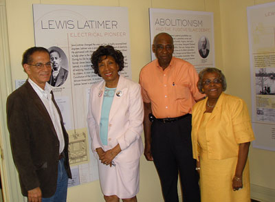 | (L to R) Queens Poet Laureate Julio Marzan, Möbius Editor-In-Chief/ Publisher Juanita Torrence-Thompson, Alfred Rankins, President, Board of Directors, Lewis H. Latimer Fund, Inc. and Catherine Williams, Treasurer, Board of Directors, Lewis H. Latimer Fund, Inc. |